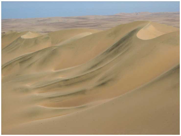 Une oasis en plein désert, un coin incroyable. Le top du top étant de faire quelques descentes de surf sur le sable. Nous nous sommes levés un peu plus tôt pour une ballade sur les crêtes… C'était beaucoup trop tard… Chaud, soif, le sable brûlant qui fait mal aux pieds, la gorge sèche, le souffle court… mais quelle beauté.