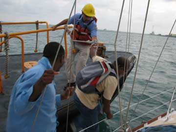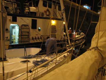 Nous devons passer avec Rea un voilier Australien et un catamaran. Nous attendons le pilote qui devrait arriver entre 18 et 19heures.