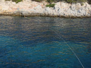 Pas question de descendre à terre et encore moins d'y rester… Nous quittons le lendemain matin cet endroit infernal pour le sud de l'île Rineia. Nous avalons ces 15 milles à plus de 7 Nds, grand voile à 50% et foc à 30% au petit largue. Nous mouillons dans un endroit paradisiaque abrité du vent et de la mer… Ca fait du bien. |