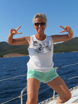 Et c'est parti pour l'île de Paxos. Nous levons l'ancre à 11h pour 6 heures de navigation… C'est l'occasion pour l'équipage de s'essayer aux différentes manœuvres. Très vite chacun trouve sa place. Armande à la barre et aux voiles, Jean marie au mouillage et aux écoutes…