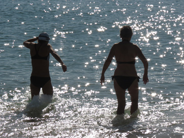 Après un bon petit déj, suivi d'un bon bain (surtout pour Mirella qui nage comme une sirène qui ne craint pas l'eau froide), nous descendons en ville. Le capitaine part de son côté, va-il trouver un câble ? Les autres vont se balader en ville.