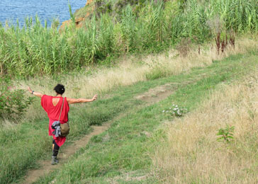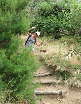 Nous longeons la crête pour ensuite redescendre sur la droite et rejoindre la plage en longeant la mer. |