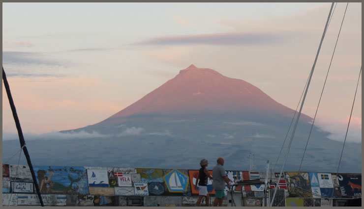 L'île de Faial a un statut bien particulier dans le cœur des navigateurs au grand large. C‘est une escale incontournable pour tous les voiliers qui reviennent des Antilles. Tous les grands et petits navigateurs qui se sont arrêtés dans le port d'Horta ont laissé une trace sous la forme d'une peinture. Du simple nom daté à une fresque élaborée avec talent, ces dessins nous font voyager et excitent notre imaginaire. La légende nous dit que ces peintures sont un remerciement à la mer pour cette longue traversée qui vient de s'achever et une demande de clémence pour les navigations futures |
