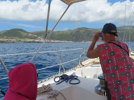 La marina de Velas n'est pas grande alors avant de quitter Horta, je téléphone à José, le responsable, pour lui demander de nous réserver une place. C'est parti, Cap sur Velas soit 5 à 6 heures de navigation. |