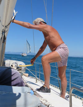 Passée la langue de sable, le vent est là. Nous établissons les voiles et naviguons jusqu'au mouillage de préveza, tout à la voile.