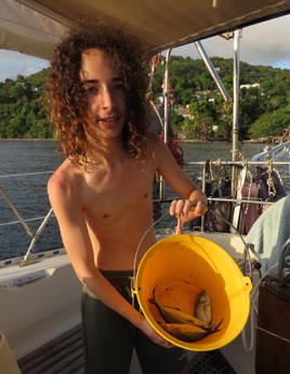 Et c'est parti pour Les Saintes, nous avons une vingtaine de miles à faire. Maïa qui redoute terriblement le mal de mer prend la barre et c'est quatre heures plus tard que nous prenons une bouée à Terre de Haut.