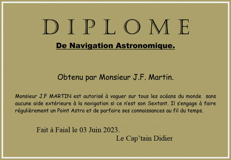 Le 11 au soir, je confirme à JF que nous allons couper sur le champ tout l'électronique du bateau et naviguer avec les astres.