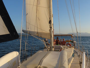 Nous y arrivons à la tombée de la nuit après une belle navigation toutes voiles dehors.
