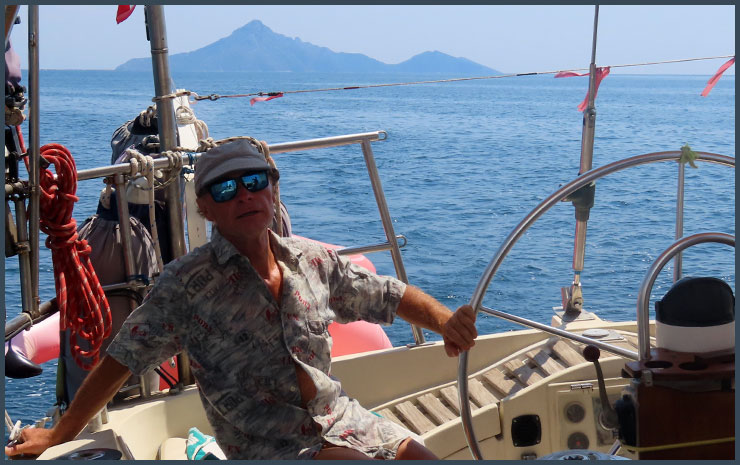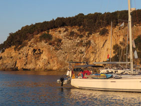 Le vent se lève vers 14 H, Nous envoyons toute la toile et mouillons à la voile à Pétalas vers 18 h. |