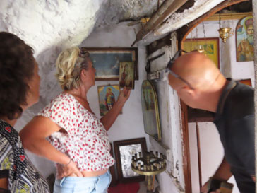Lundi 16 Septembre. Il y a une petite grotte chapelle dans la falaise. Nous allons essayer de la trouver en escaladant la paroi.